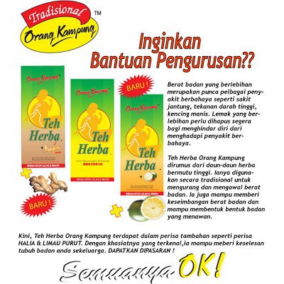 Orang Kampung Teh Herba Halia 3gmx30sct from www.permataherba.com Check spelling or type a new query. Maybe you would like to learn more about one of these? We did not find results for: Khasiat teh herba orang kampung.
